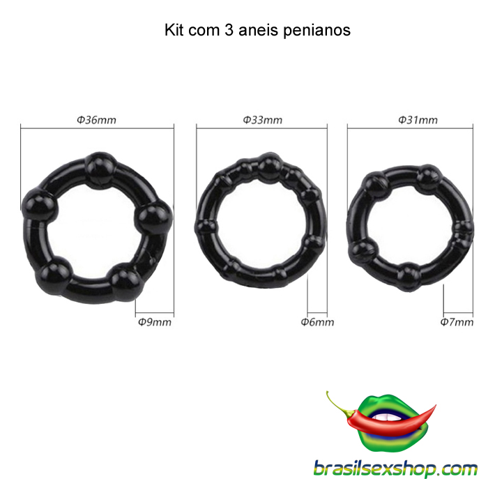 • Kit com 3 tamanhos de anéis – possibilita ajuste personalizado