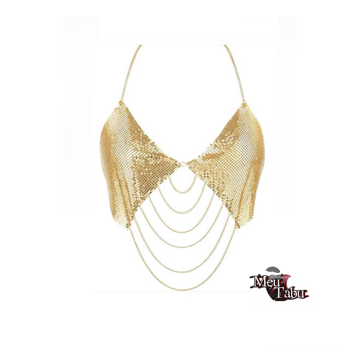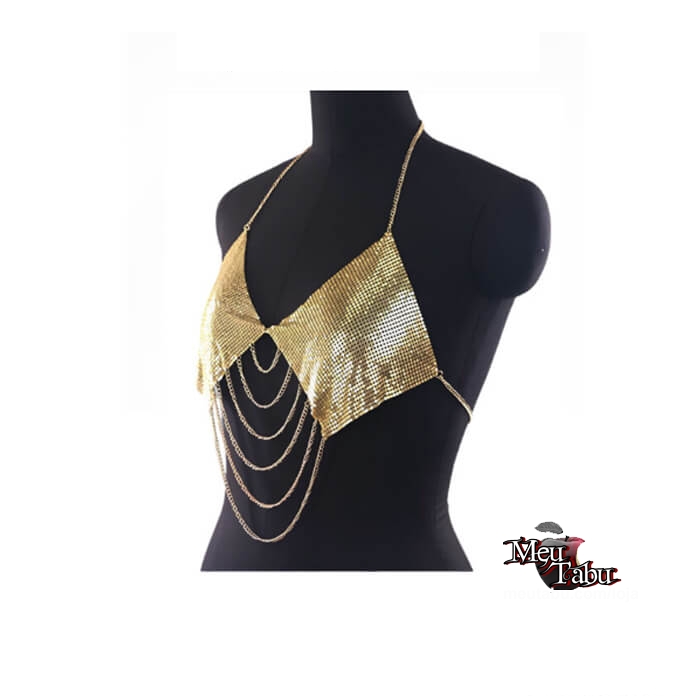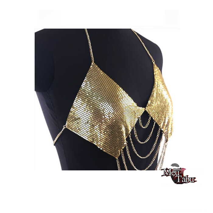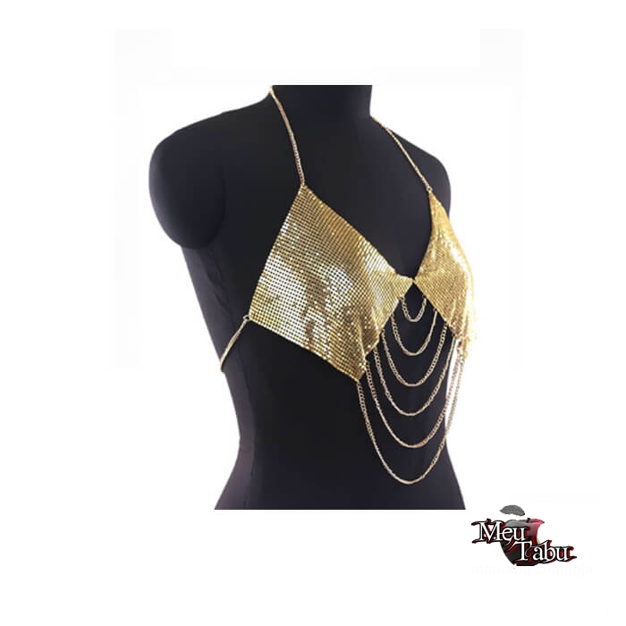 Top metalizado com correntes.